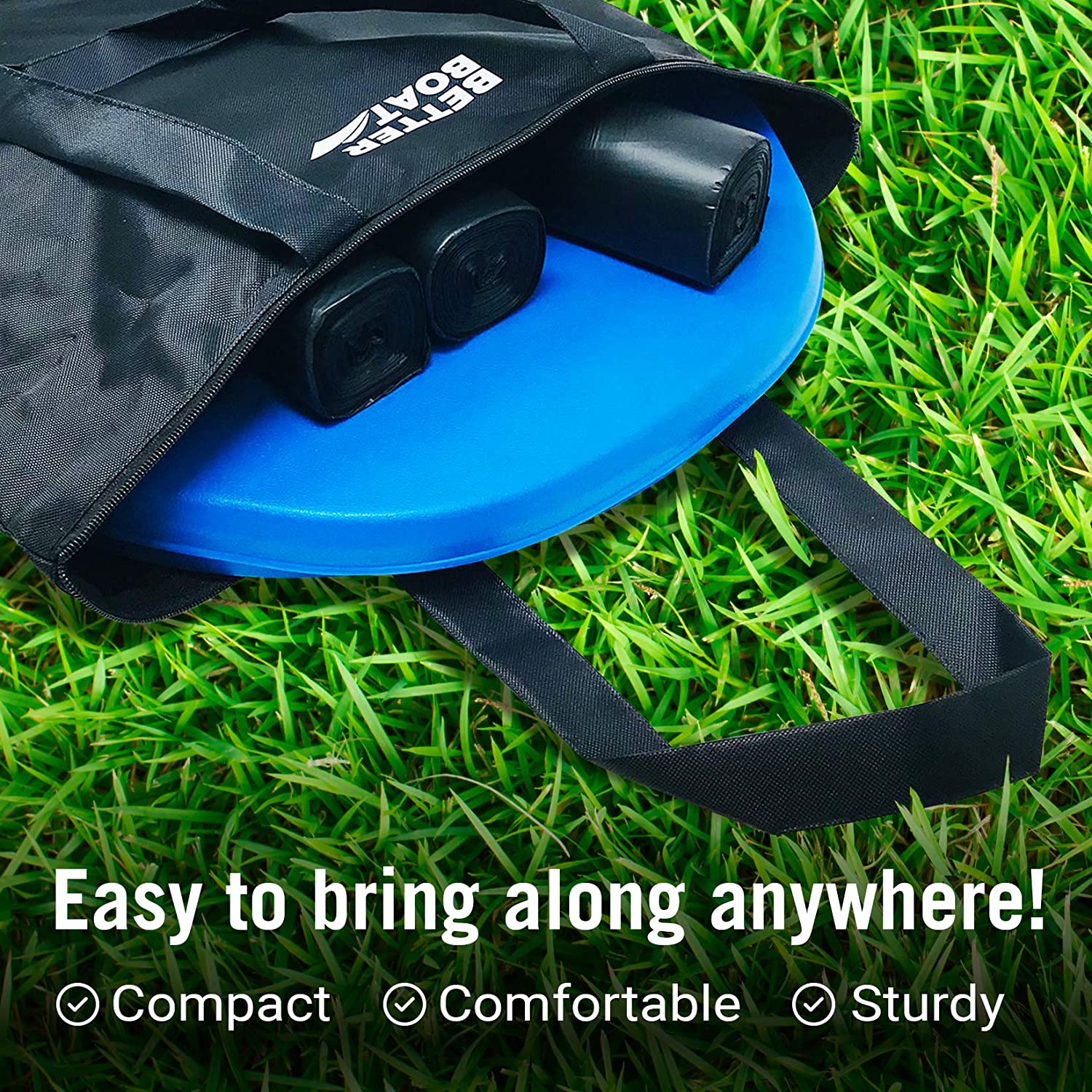 • COMES W/ CONVENIENT & DISCREET CARRYING CASE: Comes with a zippered nylon carrying case to keep it stored neatly together and away from your other gear. Can be used as a car or boat toilet seat or portable camping toilet. Mobile for camp or travel.