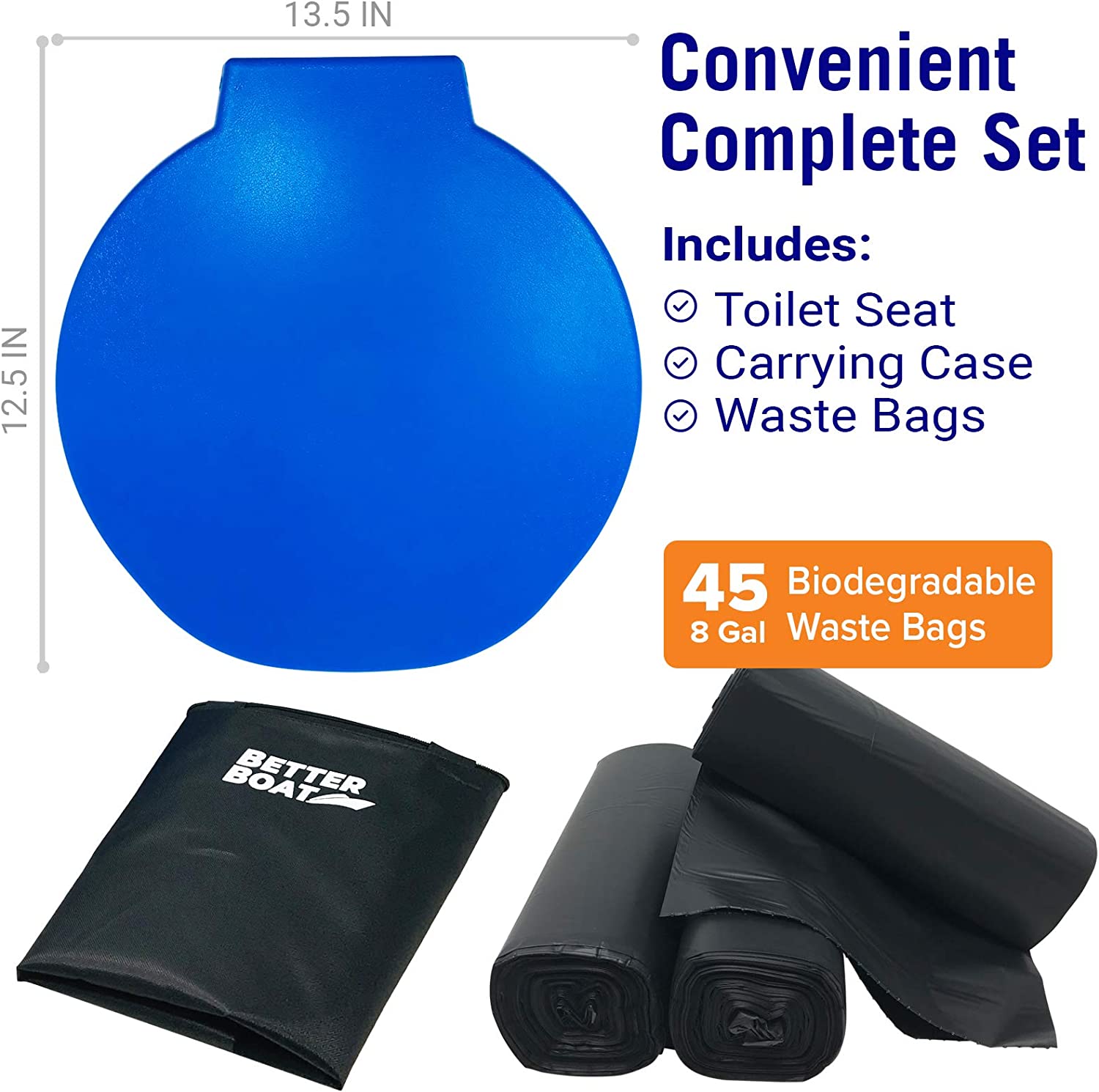 • INCLUDES 45 BIODEGRADABLE BAGS: Our portable toilet seat 5 gallon bucket with lid and cover kit comes with 3 rolls of 15ct 8 gallon waste bags. Earth-friendly bags that break down. When done, discard composting toilet bags in the trash or bury them.