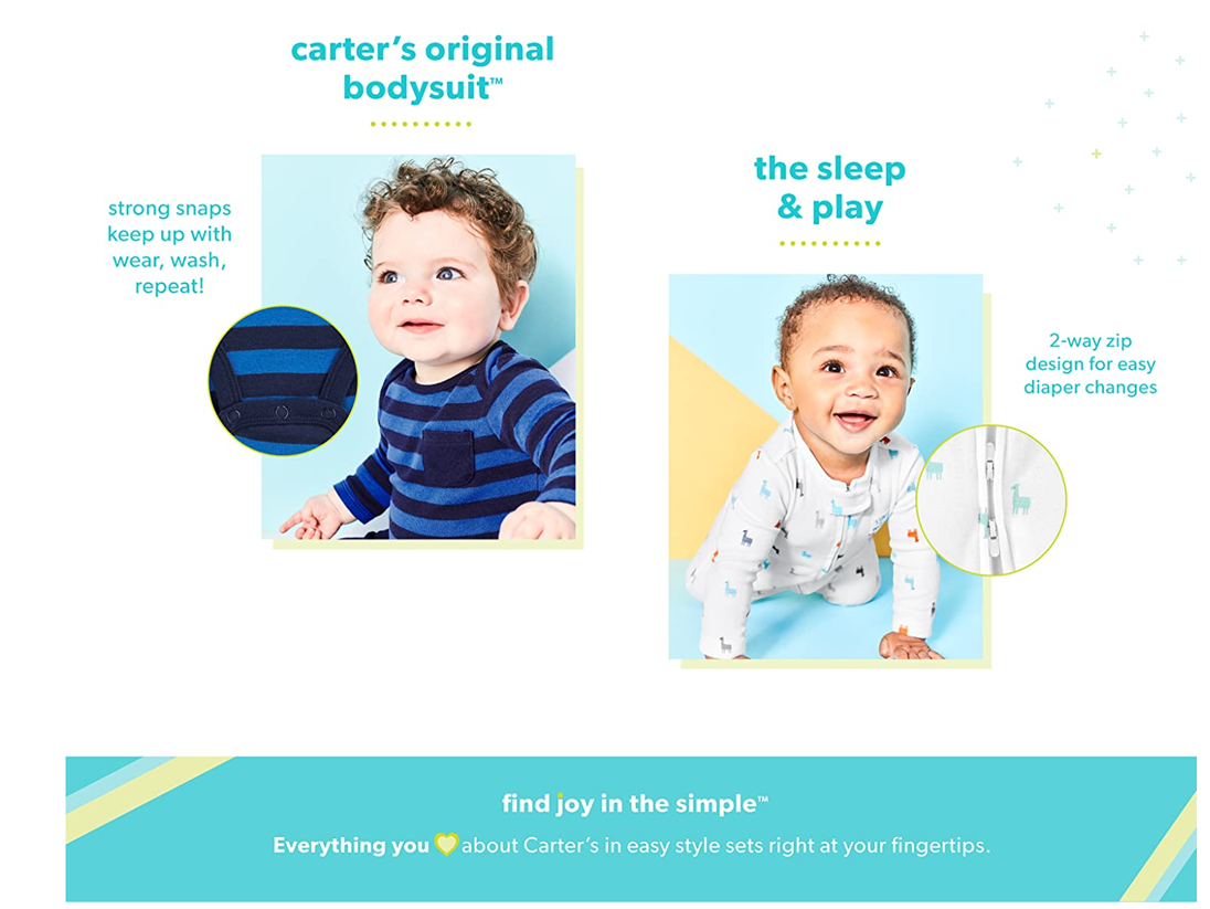 • Trusted Carter’s quality, everyday low prices, and hassle-free packaging