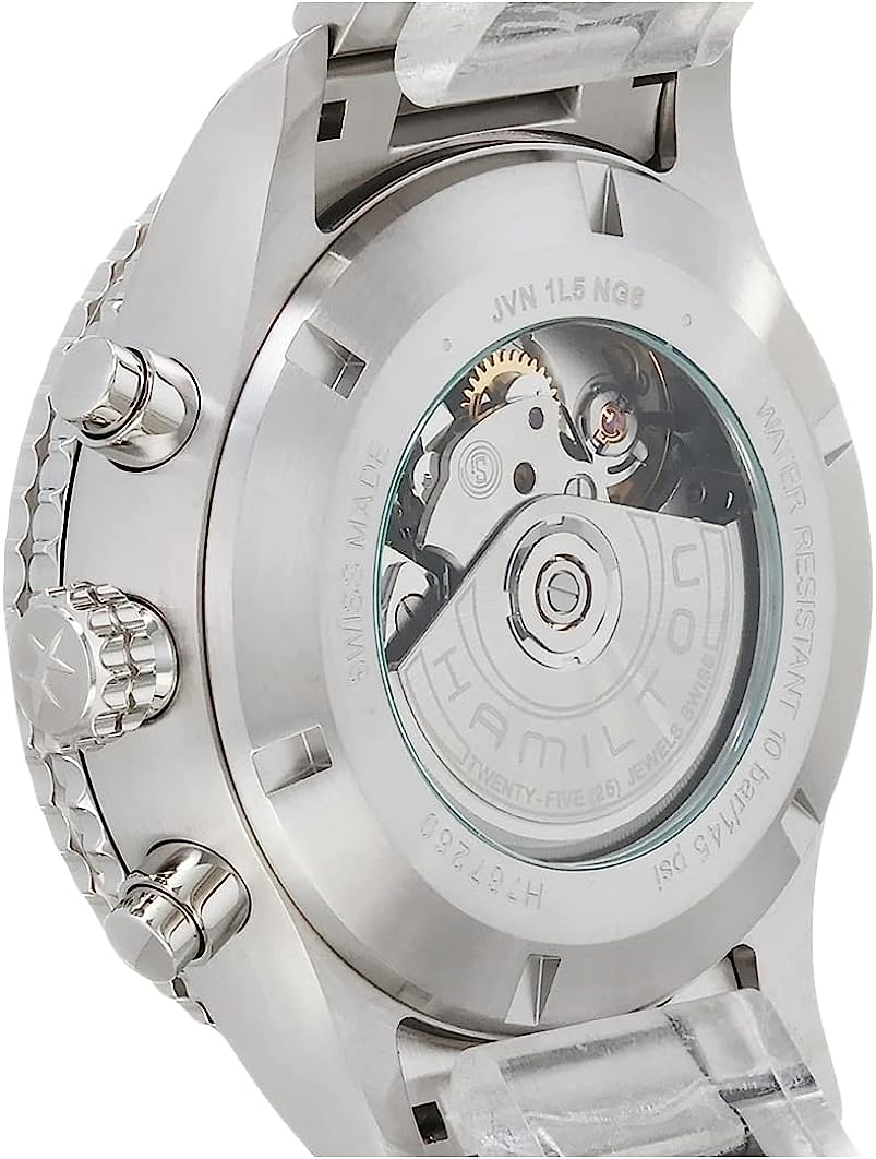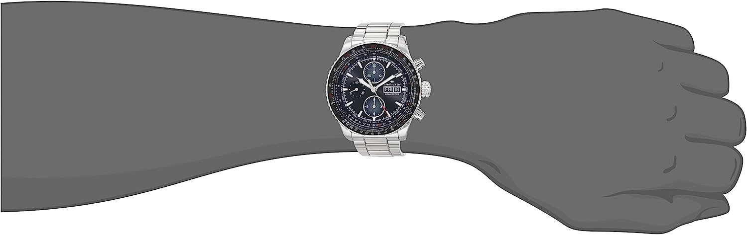 Hamilton Watch Khaki Aviation Converter Swiss Automatic Chronograph Watch 44mm Case, Black Dial, Silver Stainless Steel Bracelet (Model: H76726130)