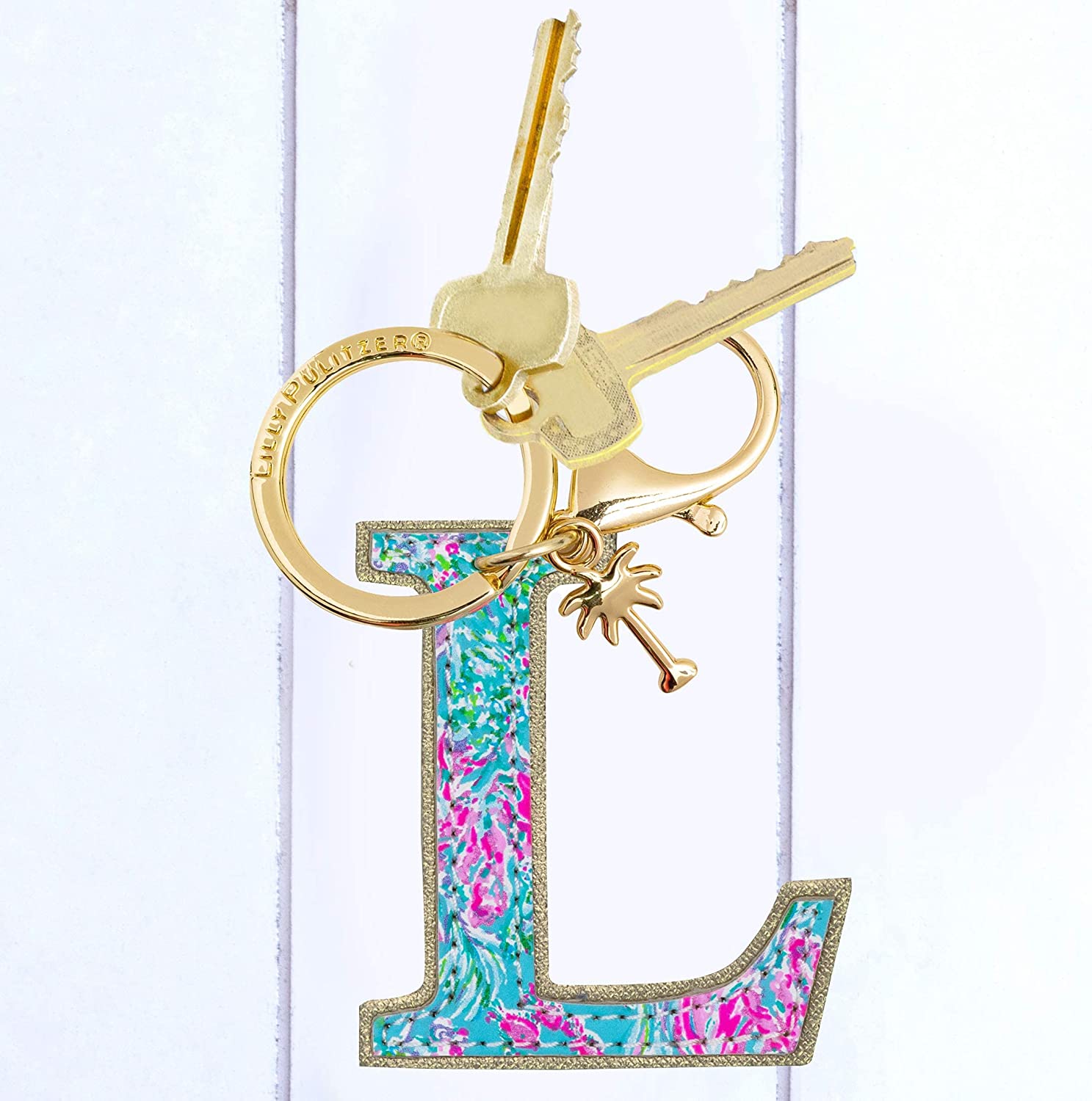 Lilly Pulitzer Leatherette Initial Keychain, Letter Bag Charm for Women