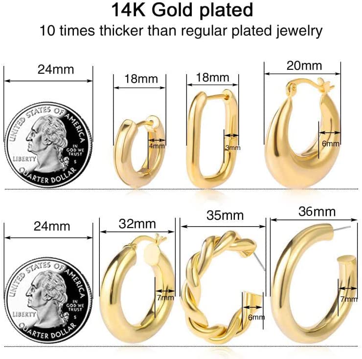 • Safe Material: These chunky gold hoop earring are made of copper with 14k gold plated that is not cause damage to your ears, which is comfortable for sensitive ears, and does not flake off and lose color.