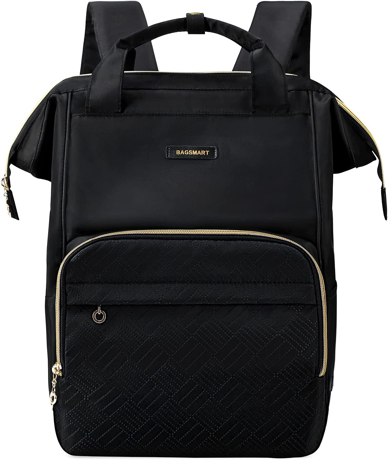 BAGSMART Laptop Backpack Purse for Women, 15.6 Inch Travel Laptop Backpacks, Black Teacher Backpack for School College Work Business Trip (Black)