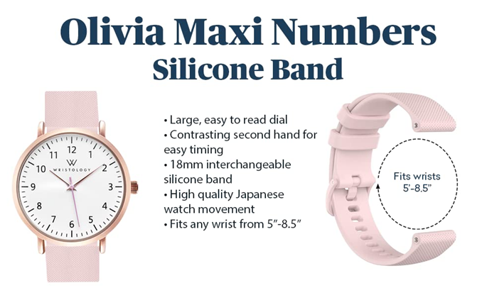 Wristology 19 Options - Maxi Numbers Watch, Silicone Band - Interchangeable Silicone Strap - Easy to Read Analog Face with Second Hand for Women, Men, Nurses, Teachers, Seniors, EMT Olivia
