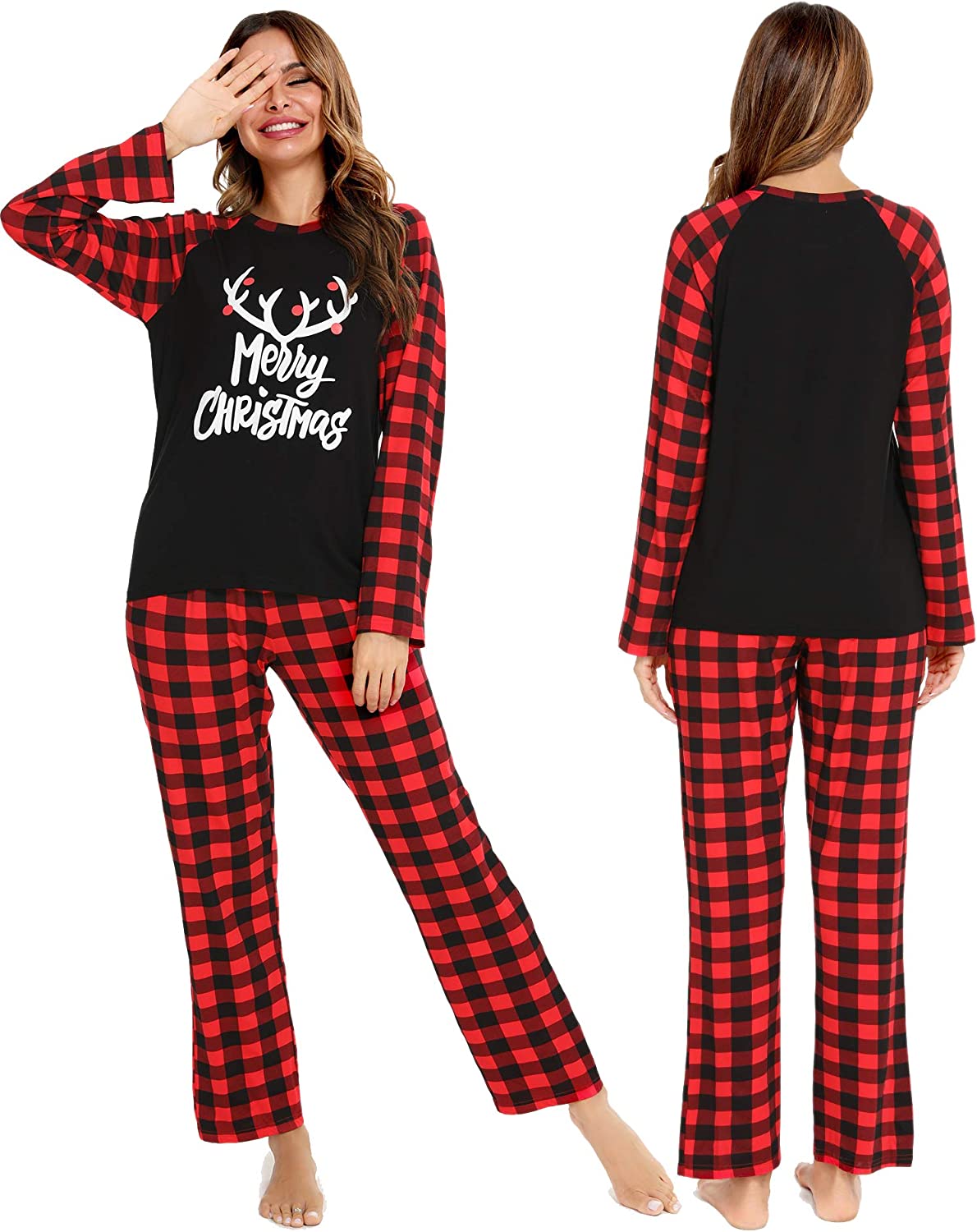 • Four Patterns Available: Printed pajama set comes with long raglan sleeve tee and pair of pants with elastic waistband;These sleepwear collections have four patterns avaiable(Christmas Tress with Letters, Chrsitmas Tress with Gifts, Christmas Deer, Christmas Deer with Letters)for a vivid and joyful look that's ideal for photoshoots or just relishing the merry season;