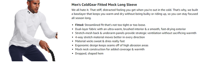 - Mock neck construction for added coverage & warmth