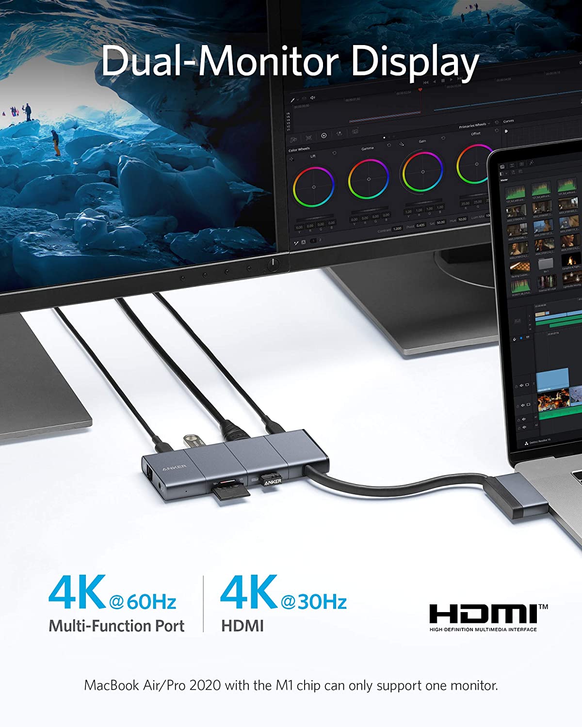 • Multi-Monitor Display: The HDMI port supports a resolution of 4K@30Hz while the multi-function port supports 4K@60Hz. Connect to both simultaneously to enjoy crystal-clear streaming or mirroring across 2 displays.