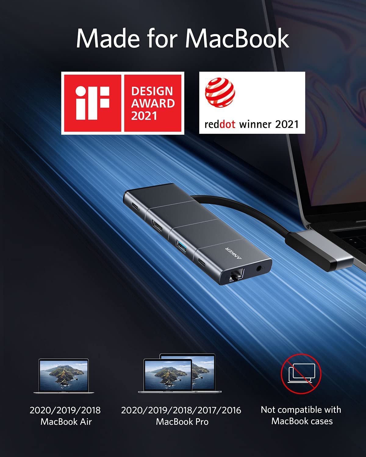 Anker USB C Hub for MacBook, PowerExpand 9-in-2 USB C Hub with 85W Power Delivery, 4K@30Hz HDMI, USB C Multi-Function Port, 2 USB-A 3.0 Ports, 1 Gbps Ethernet, 3.5 mm Audio, SD and microSD Card Reader
