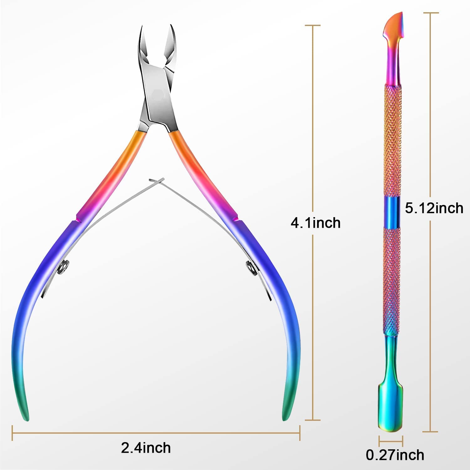 - ? Perfect Jaw Design And Dual End Cuticle Pusher: The nail nipper could easily scraper the cuticle or nail gels, even in small areas around nails. The spoon-shaped and triangle designed cuticle pusher could remove residues without pulling or tugging.