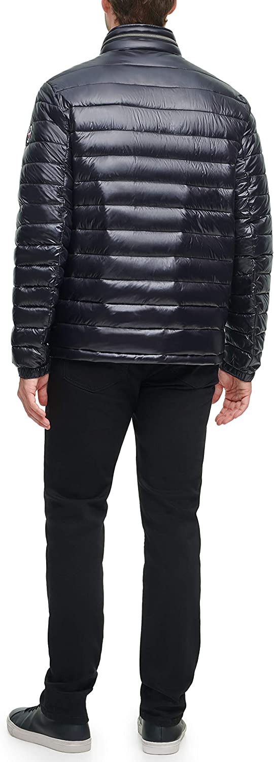 This water resistant wet look polished nylon puffer jacket is filled with a lightweight Ultra Loft down alternative filler for lightweight, comfortable warmth. This features a hidden hood inside the collar. There are two lower zipper pockets for storing personal belongings. There is also a signature red, white, and blue rib knit trim inside the collar for comfort and style as well as a rubber Tommy flag patch at the left arm and embroidered flag at the left chest.
