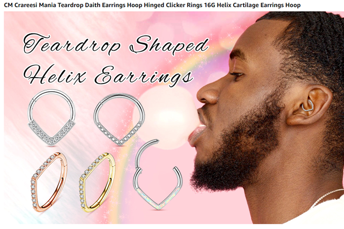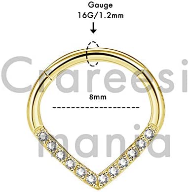 CM Crareesi Mania Teardrop Daith Earrings Hoop Hinged Clicker Rings 16G Helix Cartilage Earrings Hoop 316L Stainless Steel CZ Helix Tragus Daith Septum Clicker Jewellery
