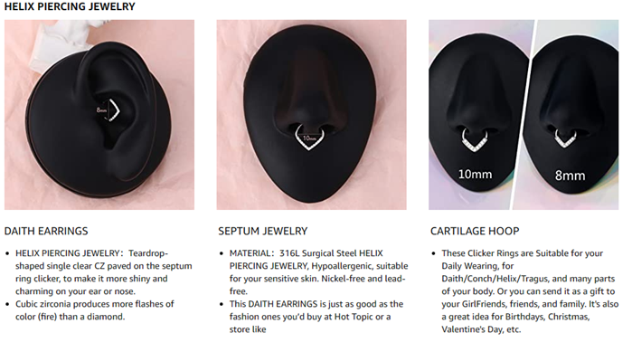 • ✿Wide Application✿:These Clicker Rings are Suitable for your Daily Wearing,for Daith/Conch/Helix/Tragus and many parts of your body.Or you can send it as a gift to your GirlFriends,friends and family.It's also a great idea for Birthday, Christmas, Valentine's Day etc.