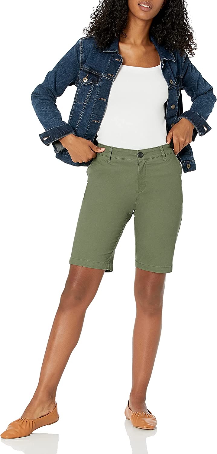 Amazon Essentials Women's Mid-Rise Slim-Fit 10 Inch Inseam Bermuda Khaki Short