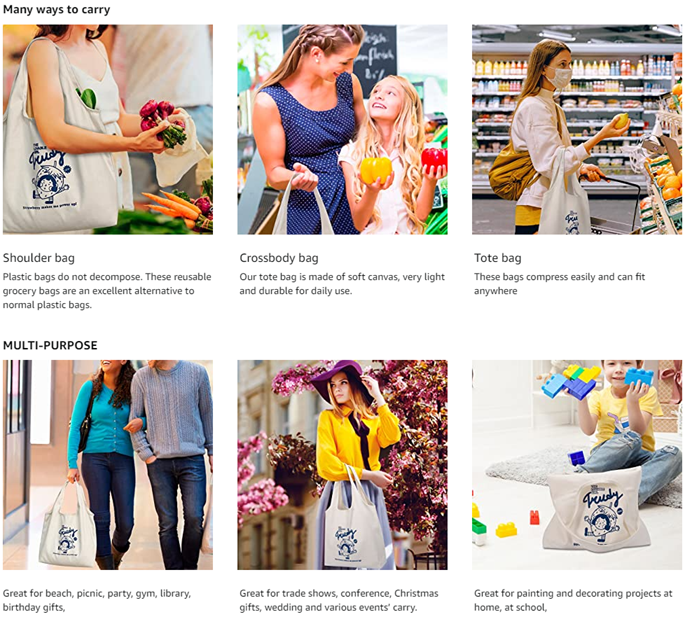 • Machine Washable: Being washable is a must for any cloth grocery bags. All these cloth grocery bags are Machine Washable. Toss the cloth shopping bags right into the washer and save your time.