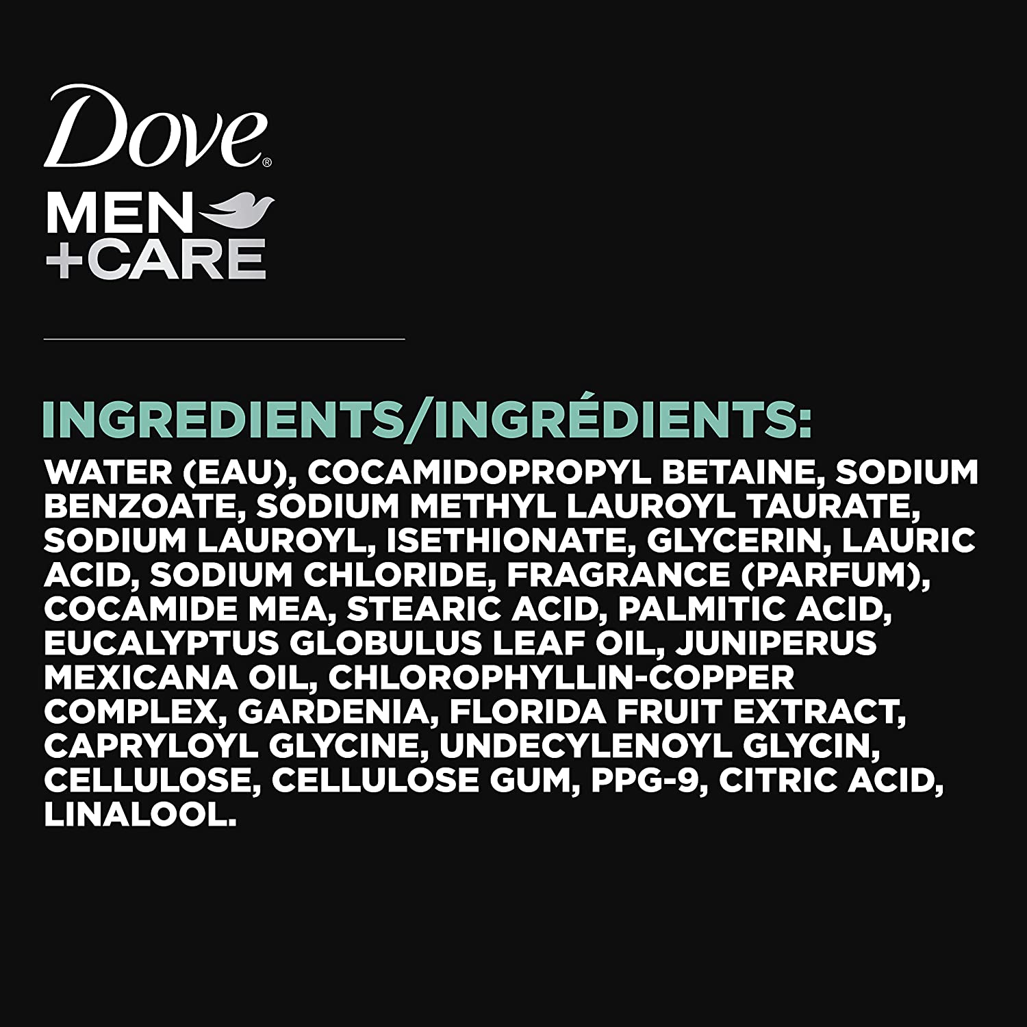 Dove Men + Care Eucalyptus Oil + Cedar Body Wash for men hydrates skin while offering you a relaxing and refreshing shower experience. Made with natural essential oils and plant-based cleansers, this body wash washes away tough germs and moisturizes your skin. This essential shower gel delivers clean and comfortable skin in just one shower. This body wash does what it promises: it's tough on odor, but not on your skin. Hit the reset button for your body and mind from the moment you apply it and take in the natural scents of Eucalyptus and Cedar. Sulfate-free and cruelty-free, this natural inspired body wash not only provides care for your skin, but also for the planet. Following Dove's global commitment to more sustainable packaging, we've designed every bottle to be recyclable and made with 100% recyclable plastic. And we're proud of what we've made. If you're looking for further proof, complete your grooming routine with the entire Dove Men + Care naturals range. Pair this body wash with the Dove Men + Care Eucalyptus + Birch Anti-Perspirant Spray or the Dove Men + Care Dry Spray Eucalyptus+ Birch. Or try our Dove Men + Care Body Wash, available in purifying scents like Charcoal + Clove and invigorating scents like Lime + Avocado Oil.