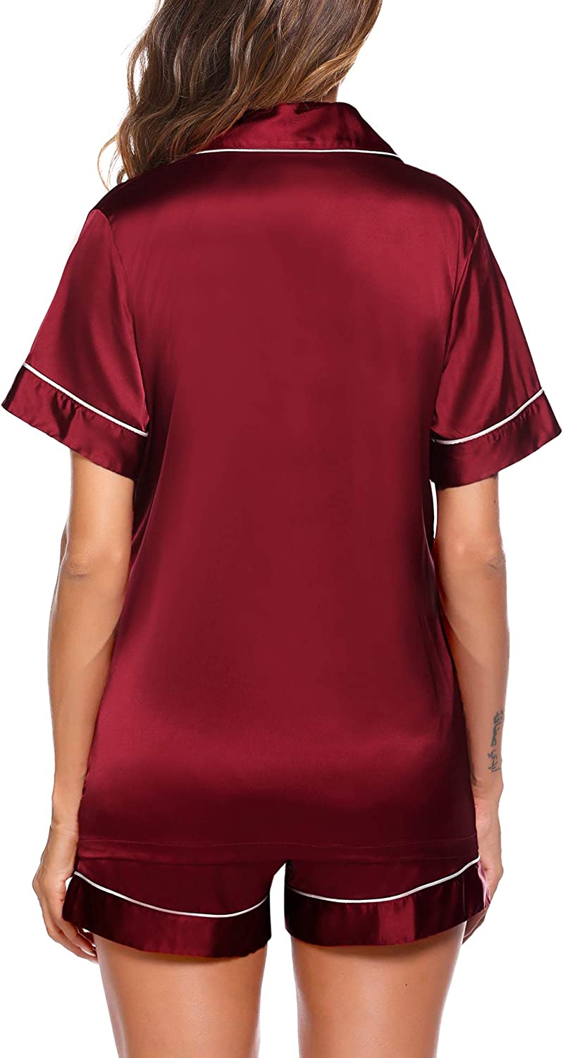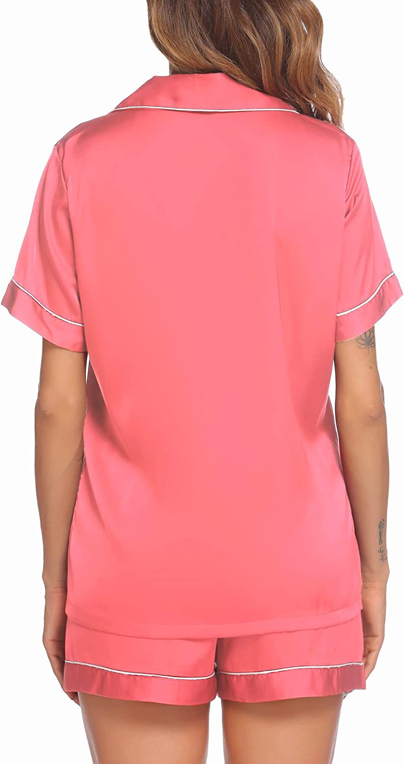 Ekouaer Satin Pajamas Women's Short Sleeve Sleepwear Soft Silk Button Down Loungewear Pjs Shorts Set S-XXL