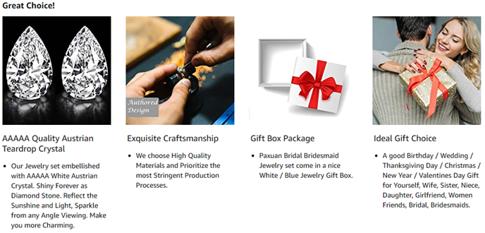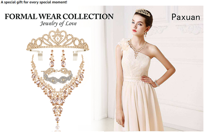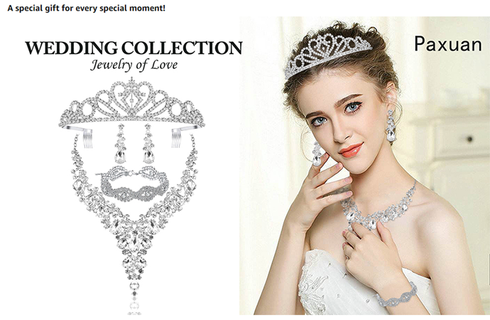 • ♥Specification♥: Brand Name: Paxuan. Material: Silver / Gold Plated Zinc Alloy + Austrian Crystal. Size: Necklace: 16'' + 2.5'' Extension. Earrings: 2''. Bracelet: 7.5'' + 2.5'' Extension. Weight: 96g/set (Perfect weight, comfortable to wear). Color: Silver plated white crystal.