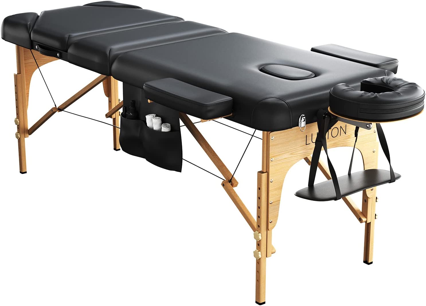 • STRONG AND STURDY SUPPORT: The portable massage bed is crafted with precision and made with high quality, durable materials. It is tested to hold a maximum weight of 551 lbs. It is professionally made with a hardwood frame and durable steel support cables.