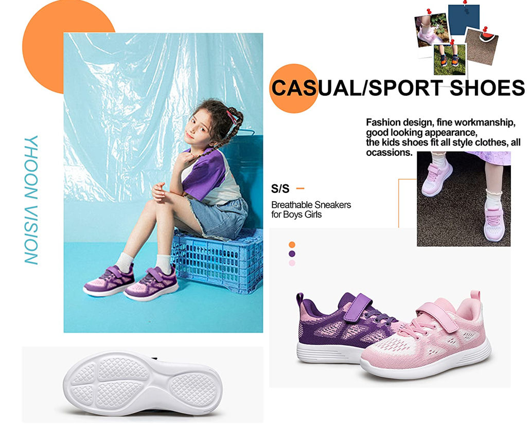 NON-SLIP AND DURABLE SOLE: YHOON kids running shoes’ MD sole can effectively prevent slipping, combined with shock absorption technology, protecting kids from hard object shock absorption.