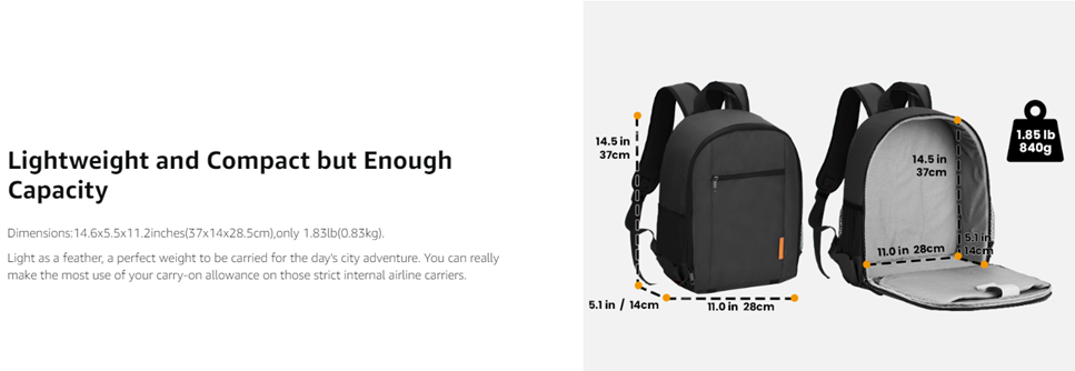 - 【ULTRA-LIGHTWEIGT】 Dimensions:14.6x5.5x11.2inches(37x14x28.5cm),only 1.83lb(0.83kg). Light as a feather, a perfect weight to be carried for the day's city adventure. You can really make the most use of your carry-on allowance on those strict internal airline carriers.