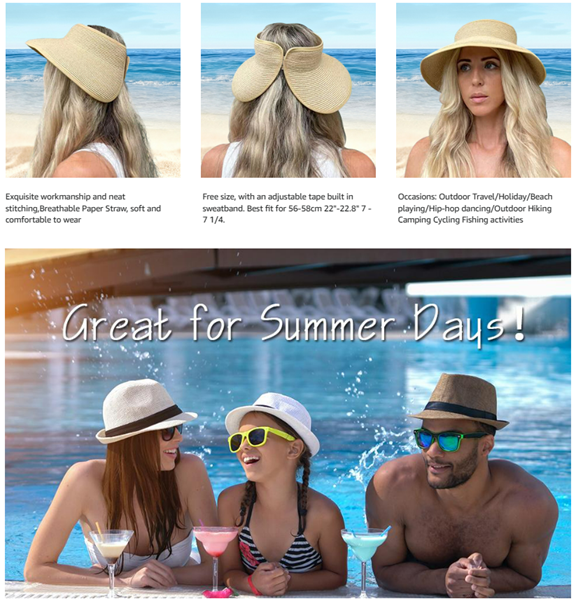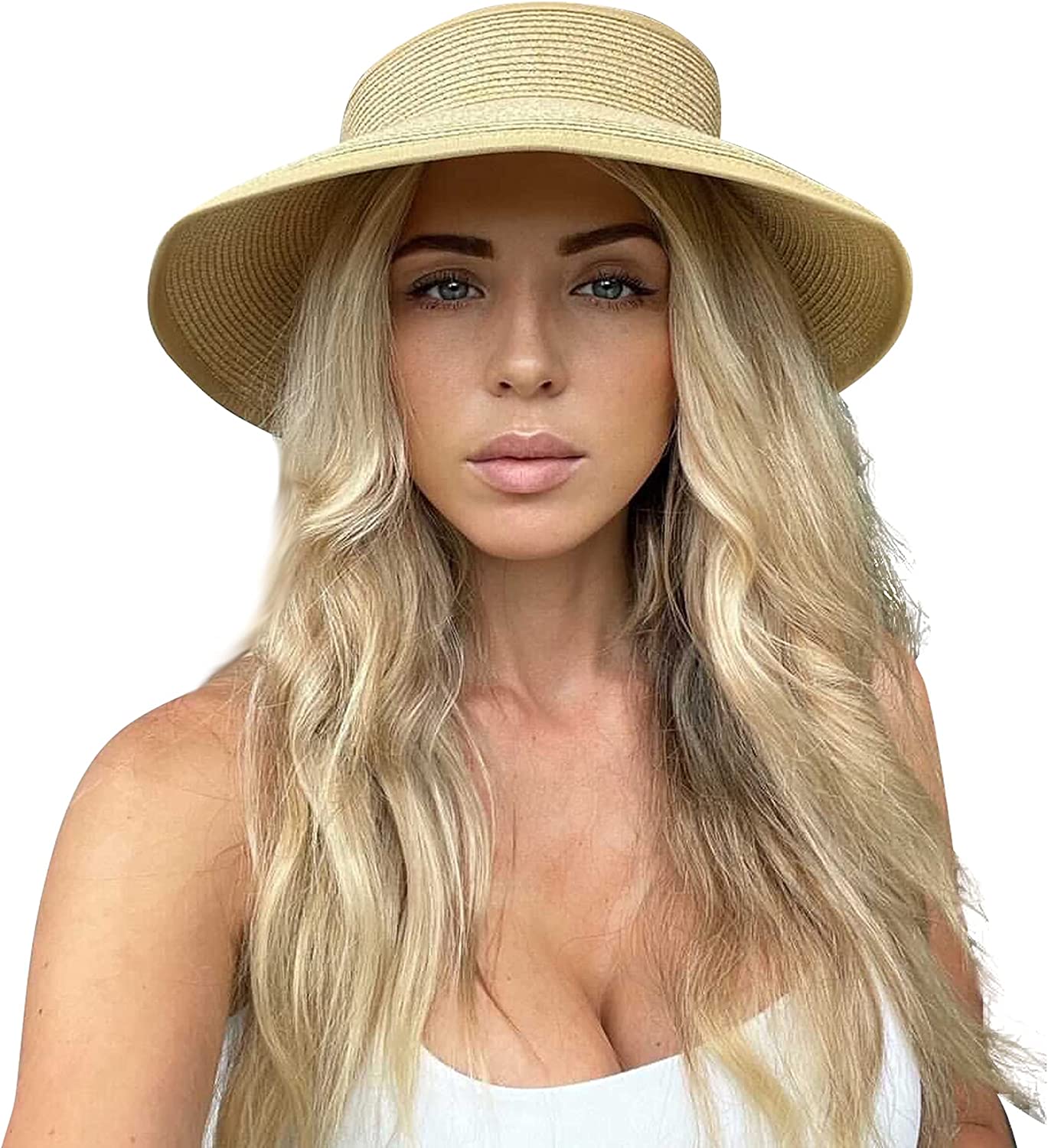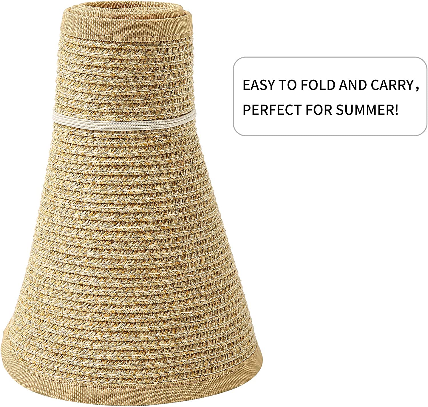 Lanzom Women Packable Hat Sun Visor Hats Wide Brim Straw Roll Up Ponytail Summer Beach Hat UPF 50
