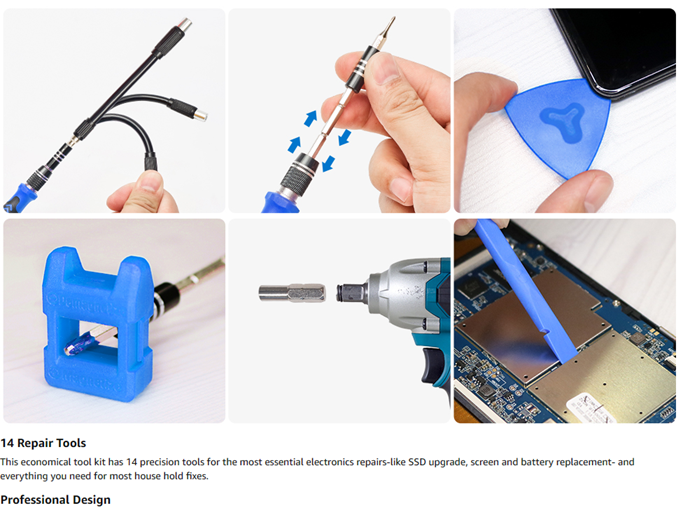 - 【Practical Accessories】The magnetizer demagnetizer tool can adjust the magnetism of the bits, strong magnetism for grabbing screws, and weak for protecting sensitive electronics. One flexible extension shaft helps to reach tight spot. The 1/4" to 4mm driver adapter allows the bits to be used by electric screwdriver. The opening picks and spudger help you open tech devices and safely remove components with ease
