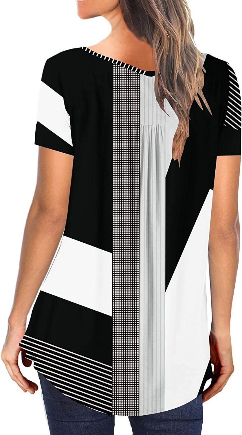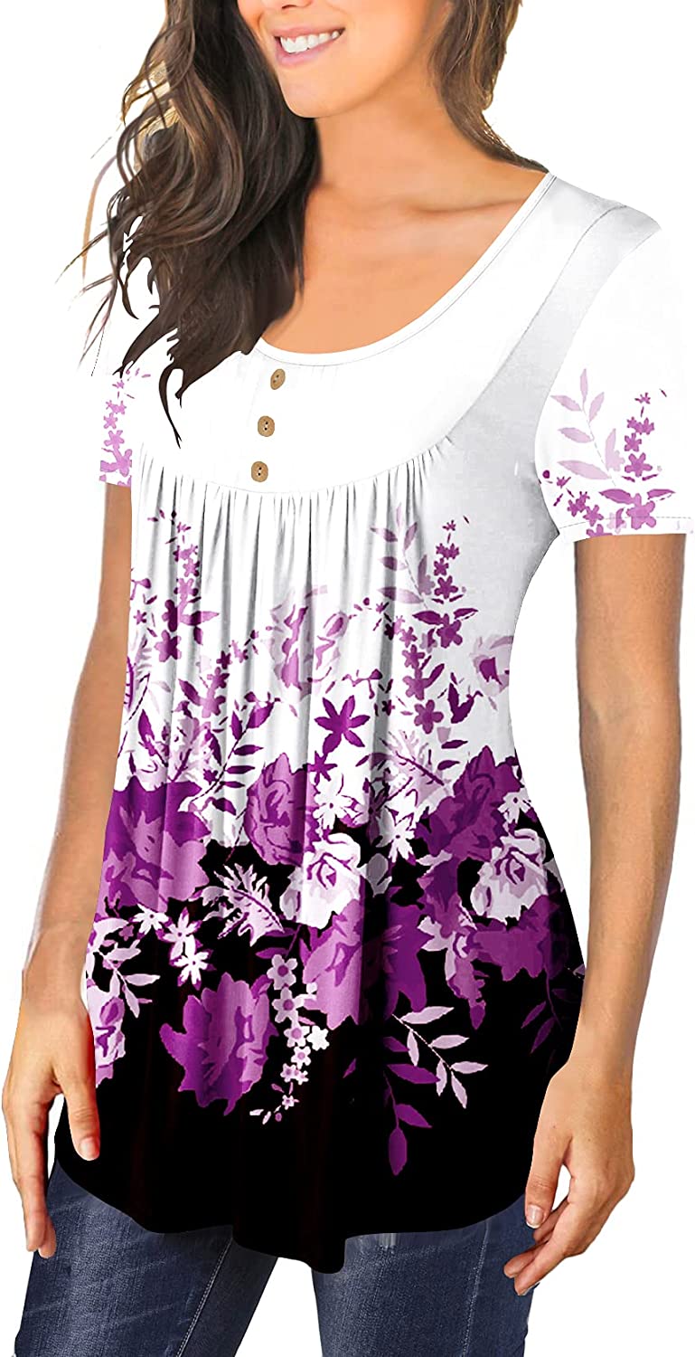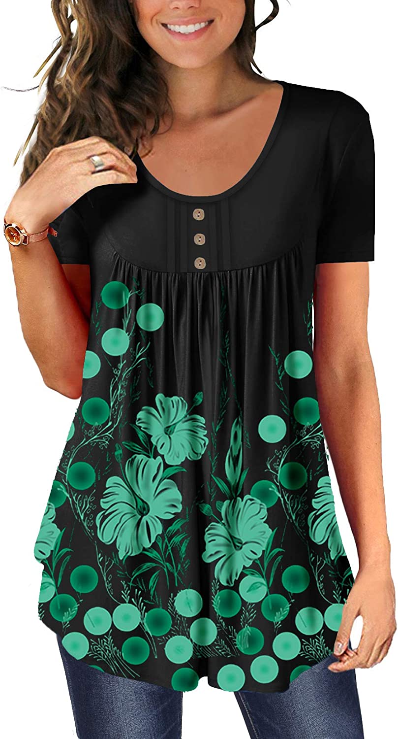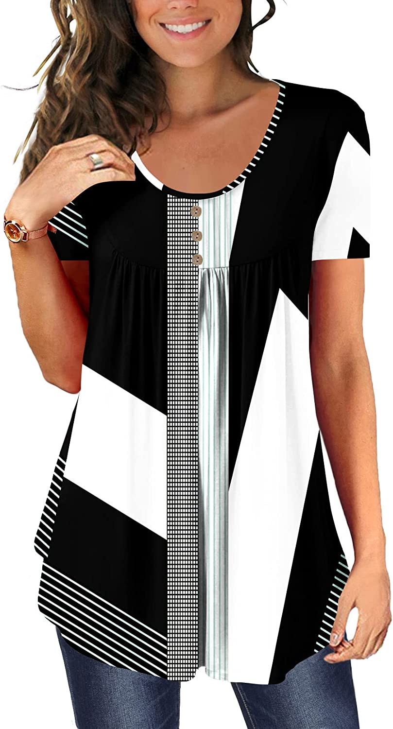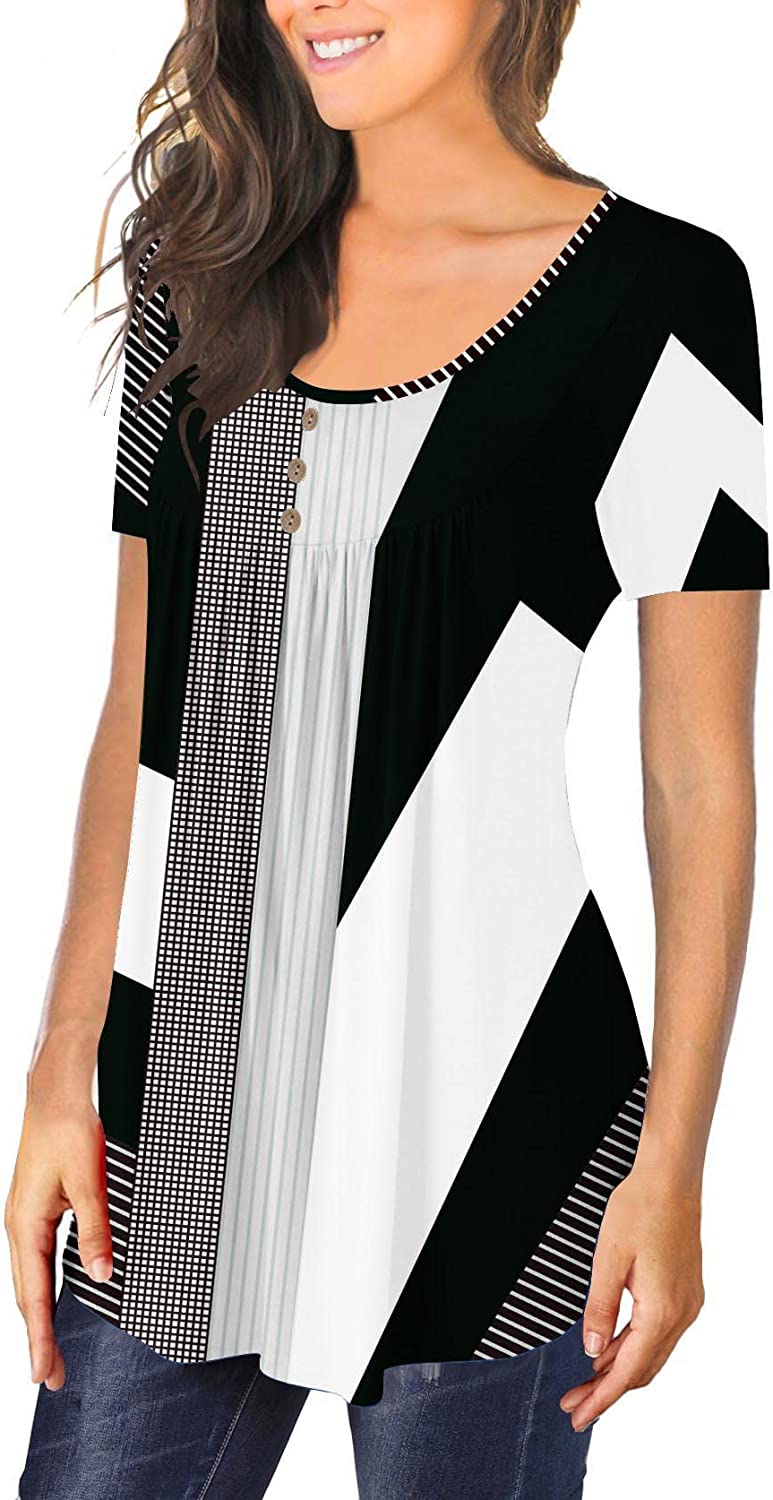 BeadChica Women's Tunic Tops For Leggings Short Sleeve Shirts Botton Up Casual Ruched Blouses Clothes