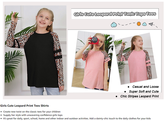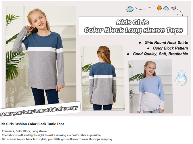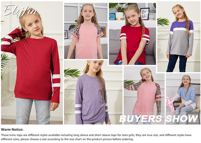 • ❀Features: Girls tunic tops with round neck, short/long sleeve, color block, striped pattern, leopard print, solid color. Super cute shirts, girls nice shirt, fashion casual loose style