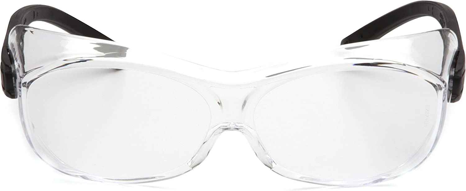 The Pyramex OTS (Over the Spectacle) safety glass is designed to fit over today's prescription eyewearThe OTS over glasses safety glasses offers single lens protection that encapsulates the eye for superb protectionThe lightweight nylon temples adjust for length and pitch for adjustingLenses are coated for superior scratch resistanceLenses provide 99% protection against harmful UV rays.