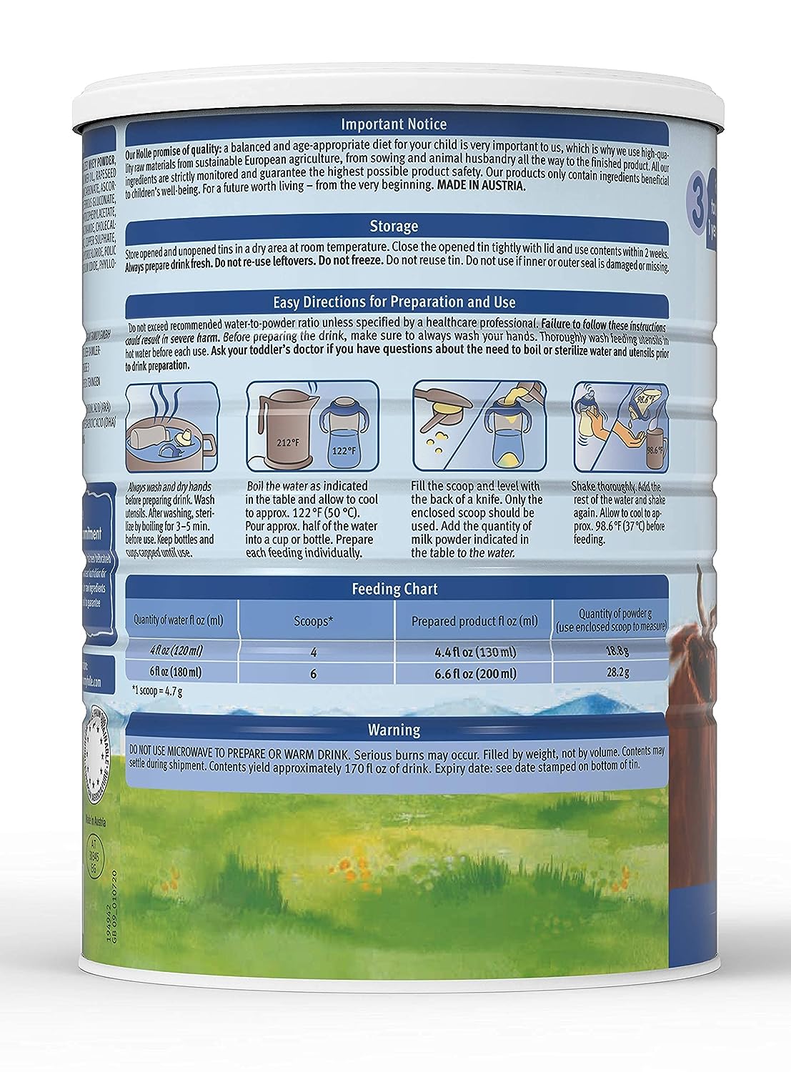 Holle Non-GMO - European Whole Milk Toddler Drink - with DHA for Healthy Brain Development - 1 Year & Up