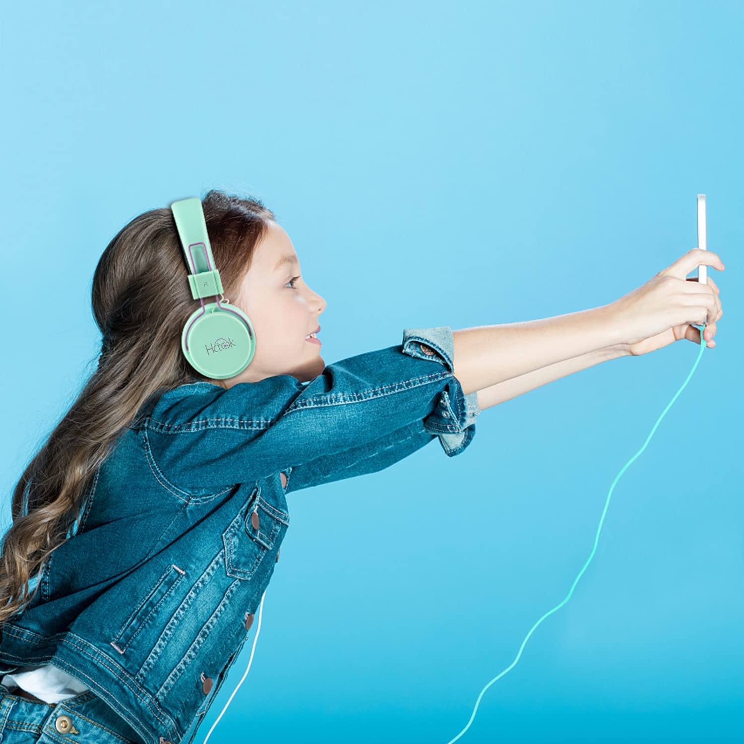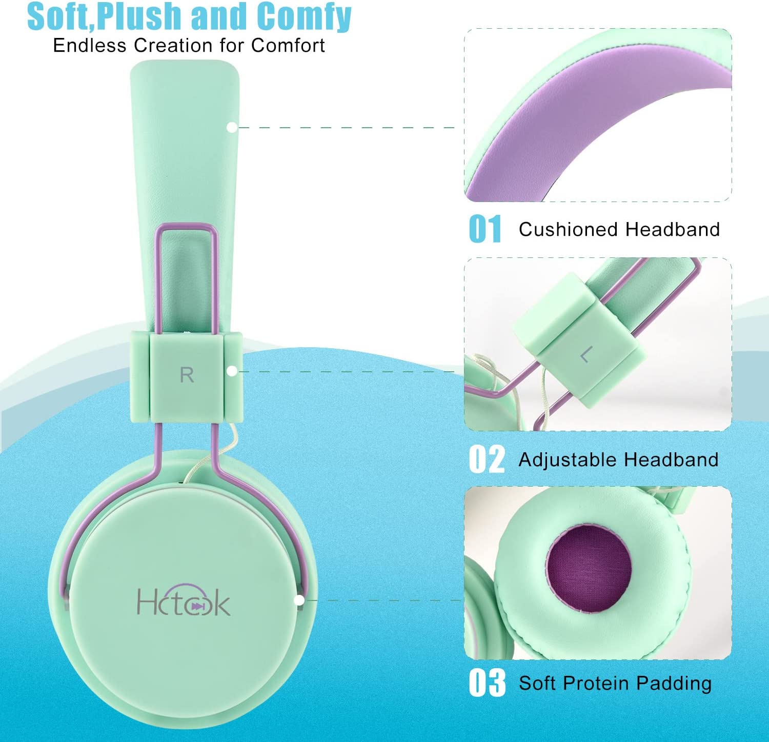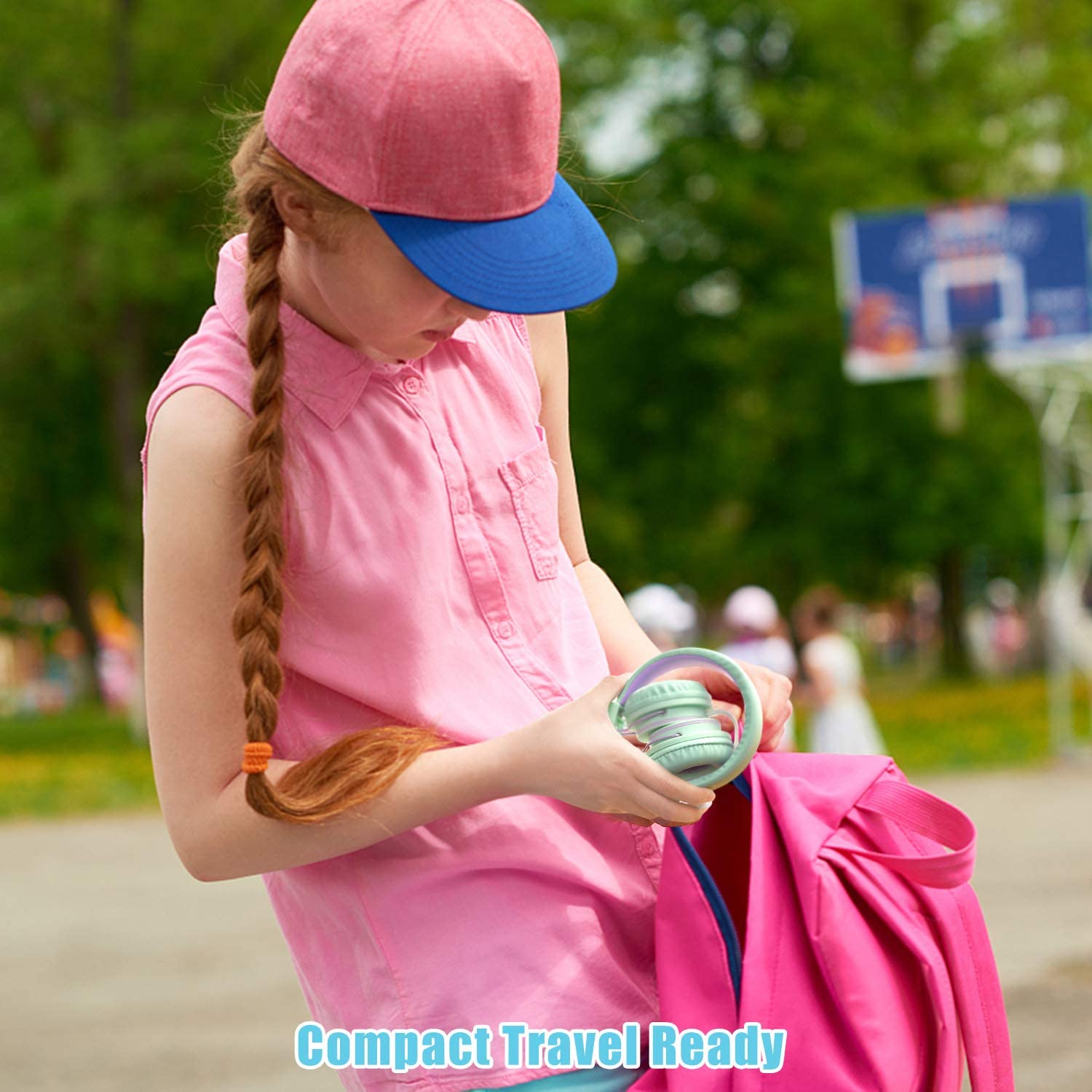 HOTCOK H37 Kids Headphones for Girls Boys Foldable Adjustable On Ear Headphones 3.5mm Jack Wired Cord for School,Home,Airplane,Car(Green/Purple)