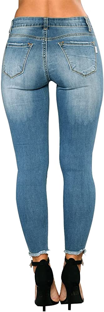 CME SHOWU Women Skinny Ripped Jeans Stretch Distressed Destroyed Denim Pants