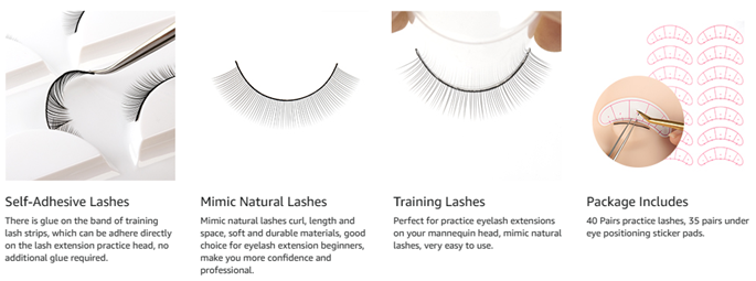 - [SELF-ADHESIVE] There is glue on the band of training lash strips, which can be adhere directly on the lash extension practice head, no additional glue required.