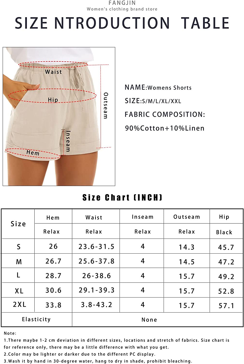 FANGJIN Womens Shorts Summer Casual Drawstring Elastic Waist Shorts Cotton Linen Hot Pant with Pockets Size S-XXL