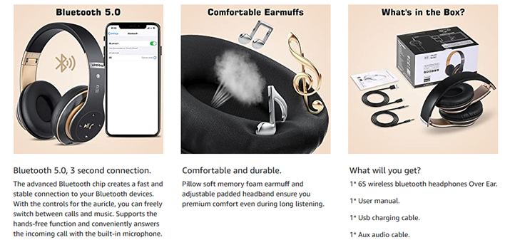 A smart choice for PRTUKYT 6s wireless bluetooth headphones to meet your daily needs.