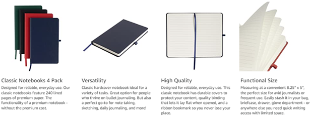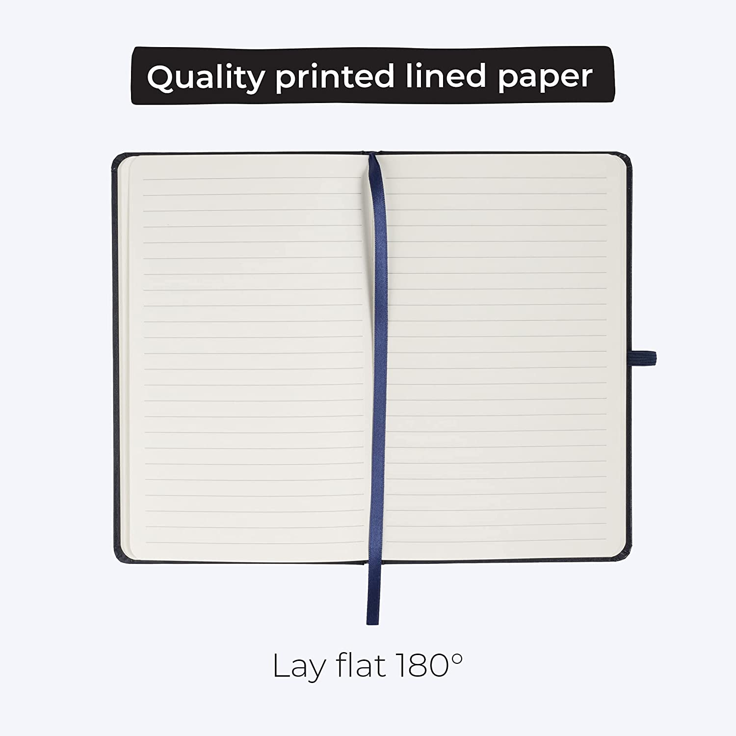 • ✅ HIGH QUALITY. Designed for reliable, everyday use. This classic notebook has durable covers to protect your content, quality binding that lets it lay flat when opened, and a ribbon bookmark so you never lose your place. Featuring 240 lined pages of premium paper, It’s all the functionality of a premium notebook - without the high price tag.