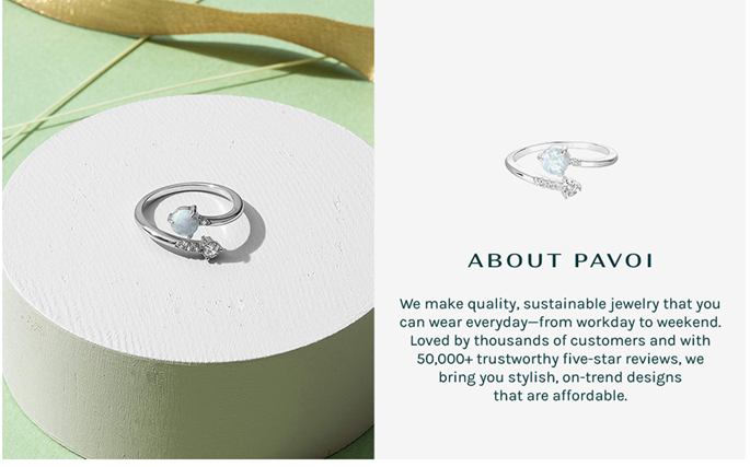 • ✦ SUSTAINABILITY ✦ PAVOI is dedicated to sustainability throughout our entire product cycle. Our jewelry is made from 100% recycled materials and we package in 99% recycled and compostable materials. We work to reduce our carbon emissions and offset plastic consumption by removing 275,000 bottles from oceans annually. We are committed to maintain a balanced and eco-friendly business that minimizes our environmental impact. Trust that PAVOI is continuously working towards a greener future.