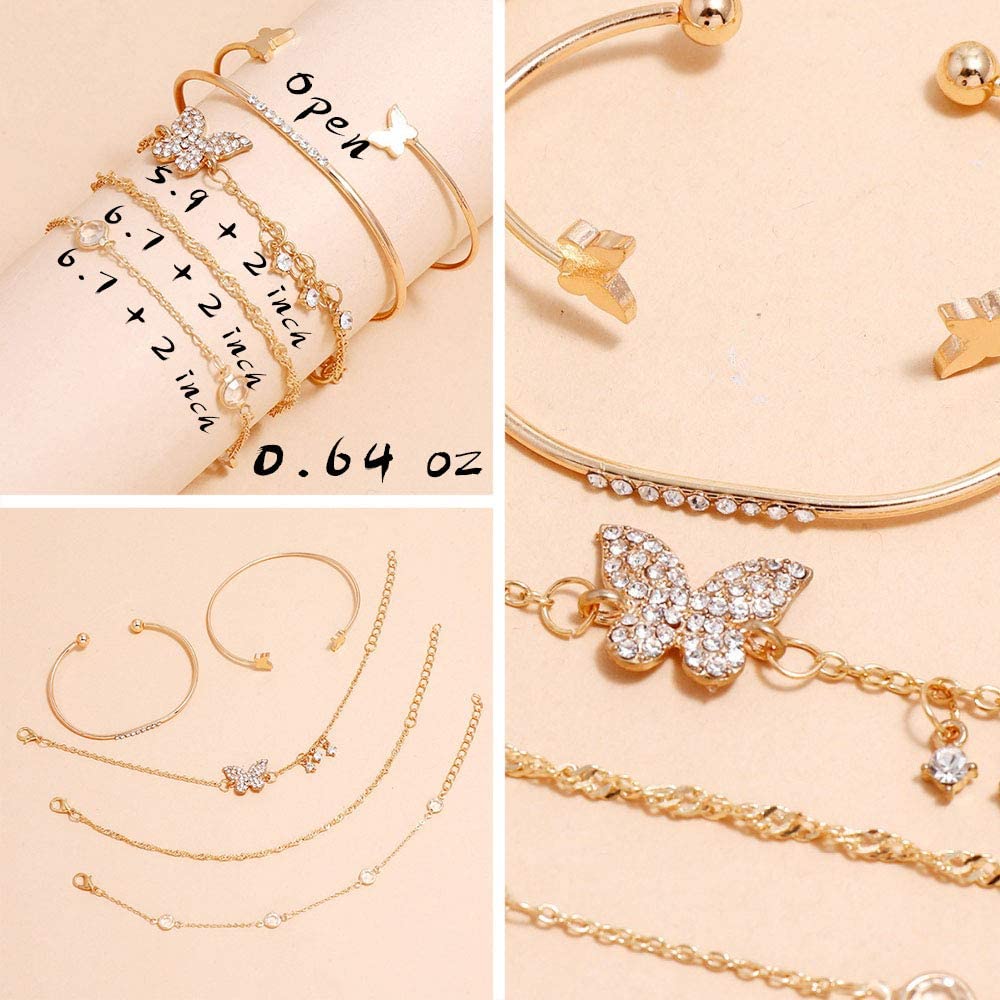 • [AFFORDABLE JEWELRY SET] : Well-chosen fashion bracelets Anklet set, 6 pack chain and open cuff bangle bracelet = 24PCS total. Catch the whole lot in an action, enrich your jewelry box