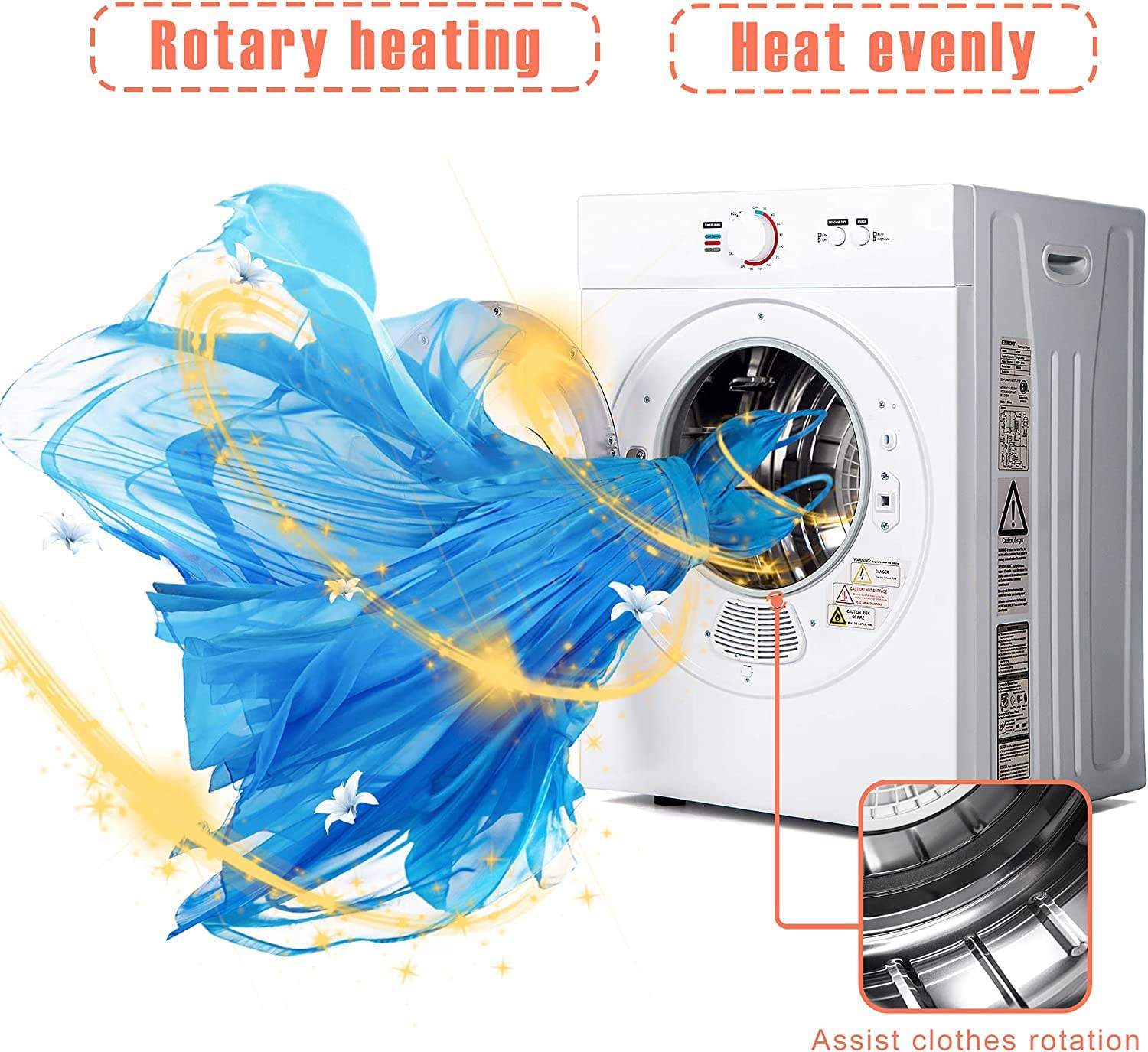 - 【Evenly heated】 This portable clothes dryer has a large-diameter, stainless steel and a special internal physical structure to deliver the best possible drying experience. These features ensure sufficient clothes rotation, prevent tangles, remove wrinkles, Evenly heated and leaves your clothes fluffy and comfortable.(In order to ensure the service life of the product, it is necessary to rest for 1 hour after working for a long time before proceeding to the next work)