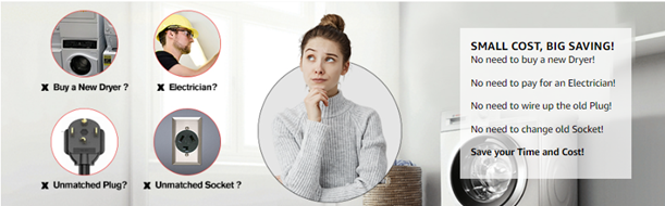 - 【Cost and Time Saving】:Buy a new Dryer? Hire an Electrician? Unmatched Plug and Old Dryer Outlet? This dryer adapter 3prong to 4 prong is the most effective and economical solution. Solve your issue just in seconds.