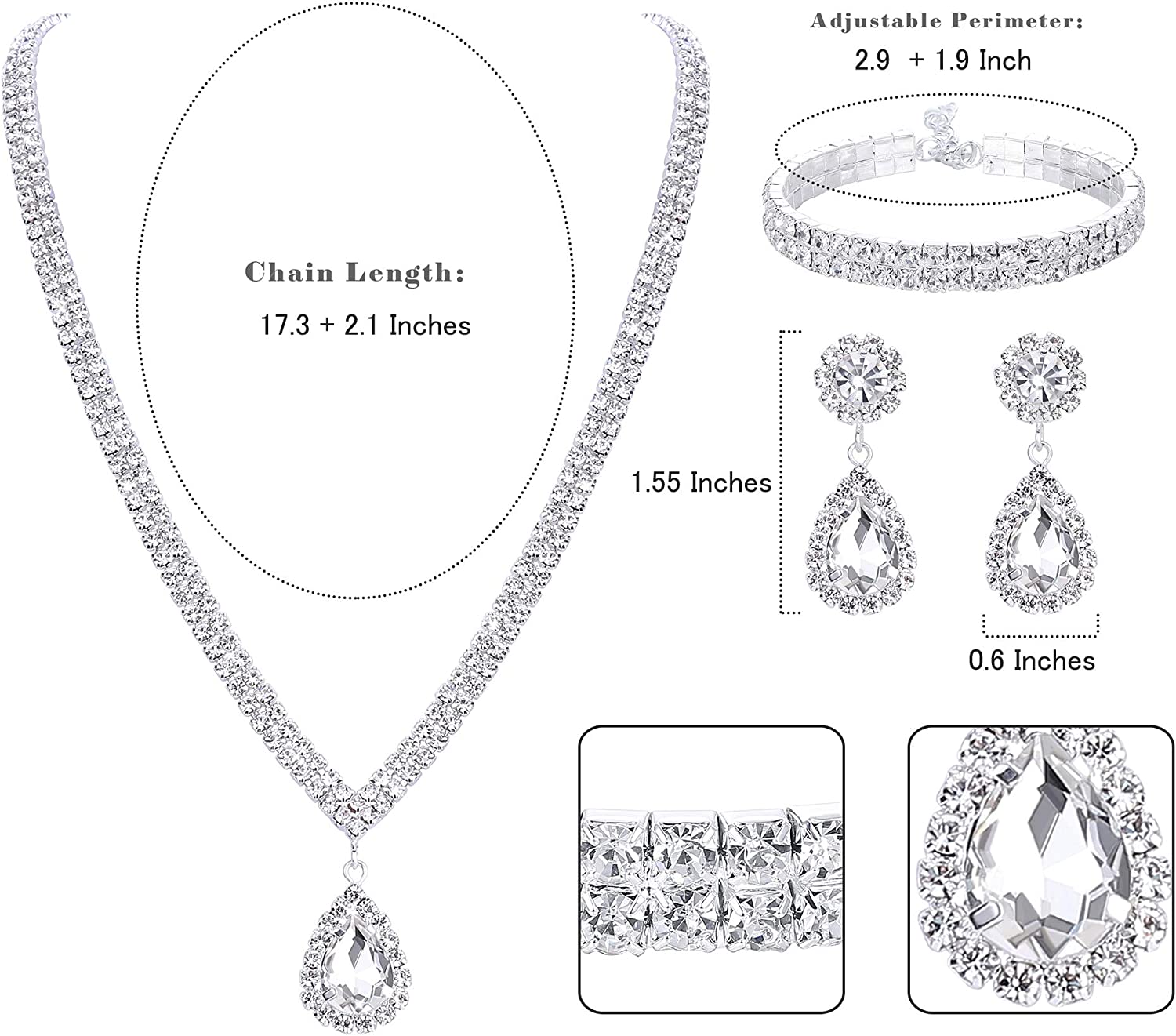 Subiceto Bridal Jewelry Set for Wedding Simple Necklace Teardrop Dangle Earrings Bracelets Crystal Prom Bridal Bridesmaid Tennis Jewelry Set