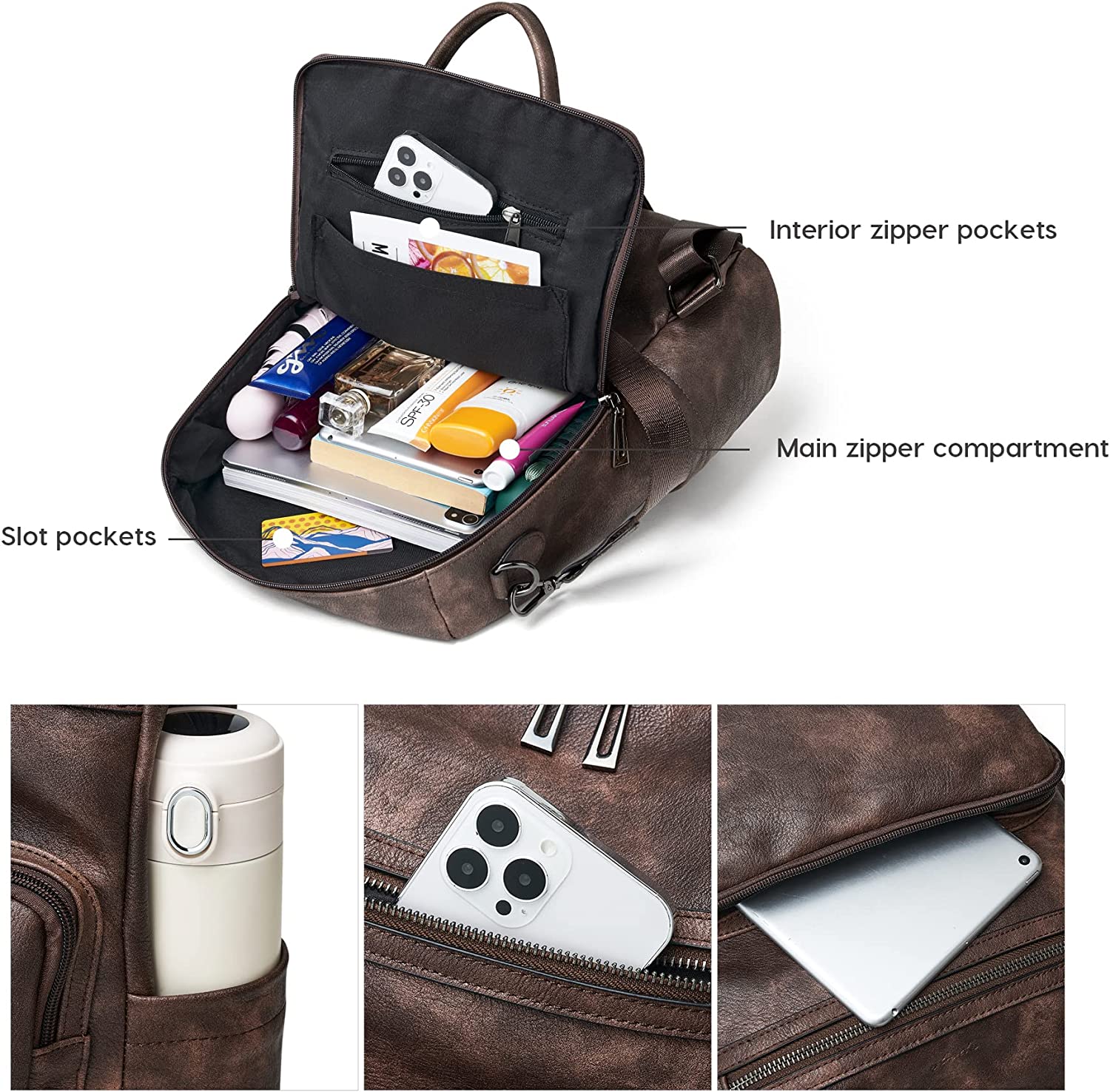 • 【CONSTRUCTION & LARGE CAPACITY】 This leather backpack purse for women adopts a double zipper with a large vertical opening at the top, which is very convenient for loading items. 1 inner zipper pockets, 2 inner slot pockets, 2 front zipper pockets, 2 side pockets, and 1 back zipper pocket. Multiple pockets can keep your things well organized.