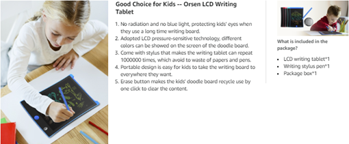 - COLORFUL LCD WRITING TABLET FOR KIDS -- Four colors: blue, yellow, green and orange!The screen is 50% brighter than before, providing a better painting and writing experience. And kids can create lines with stylus or any hard objects, just like writing on paper