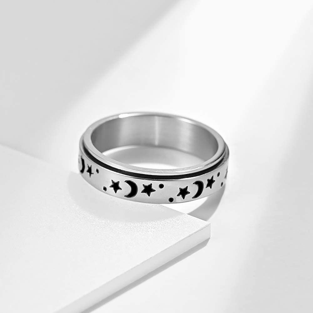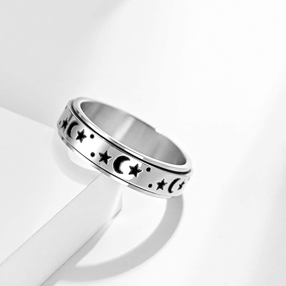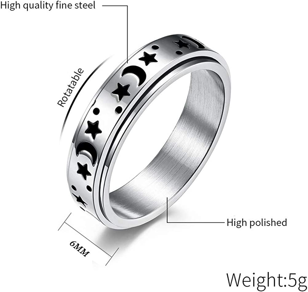• Perfect gift: This moon star spinner ring is suitable for giving to friends, family, boys, girls, boyfriends and girlfriends. If you have an anxious friend around you, this titanium stainless steel anxiety rings is the perfect gift to help them release their stress.