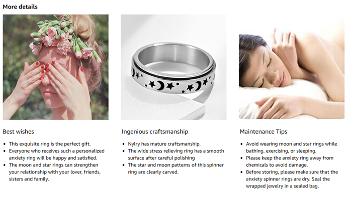 • Fashionable design: The moon and star rings contain the most popular patterns. The appearance of the anxiety ring is exquisite and unique.