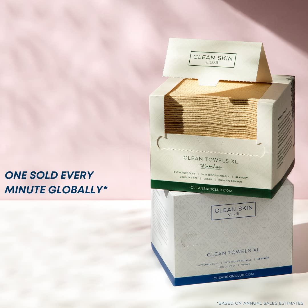 Clean Skin Club Bamboo Clean Towels XL, Award Winning Disposable Face Towel, Dry Makeup Removing Wipes, 100% Bamboo Fibers, Super Soft for Sensitive Skin, 50 Count