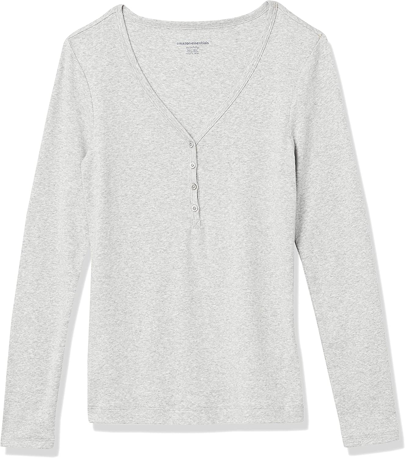Amazon Essentials Women's Ribbed Knit Long Sleeve Henley Slim Fit T-Shirt