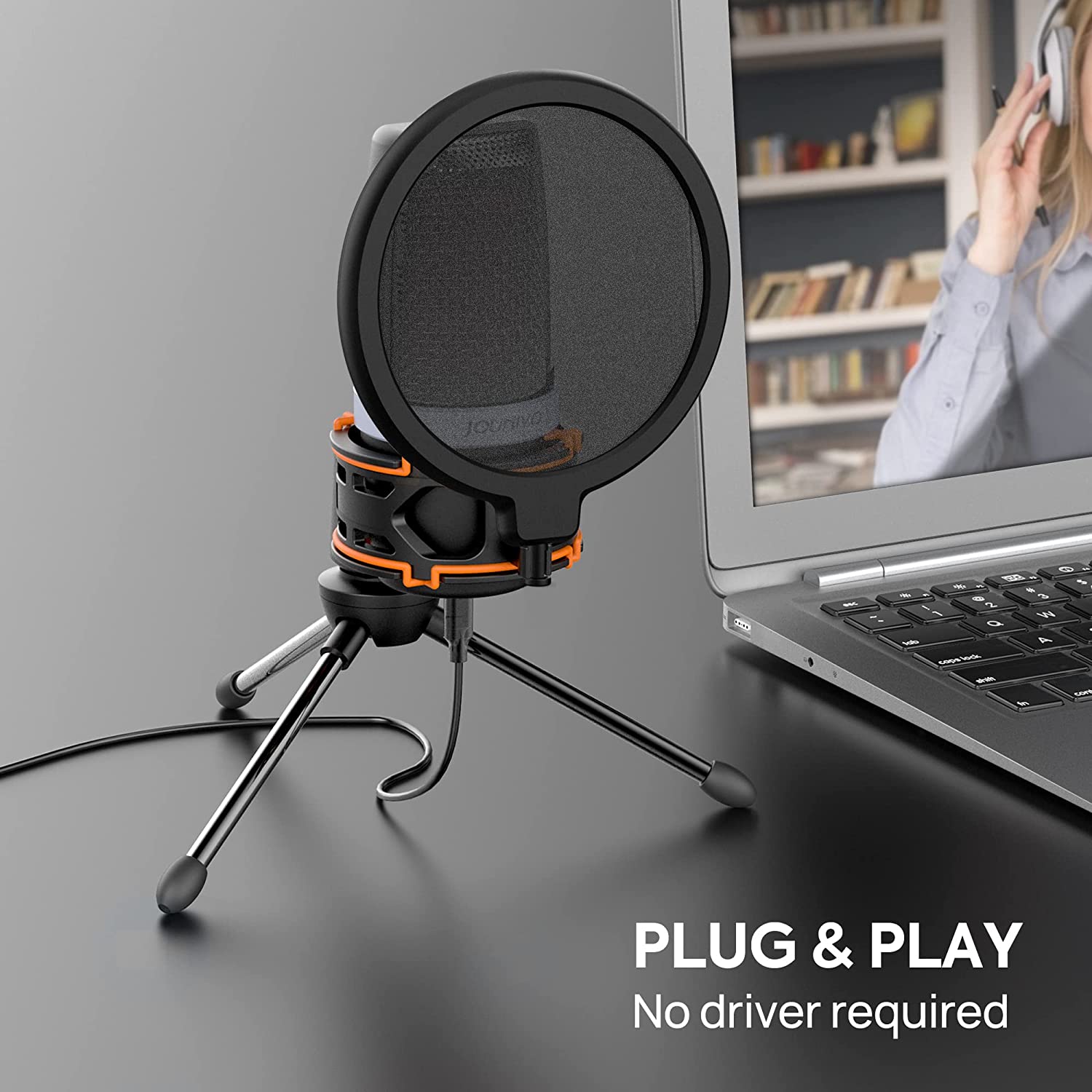 JOUNIVO USB Microphone for Computer, Condenser Microphone with Tripod Stand & Pop Filter. Compatible with PC Laptop Mac OS, Great for Streaming, Podcasts, Twitch, YouTube, Discord