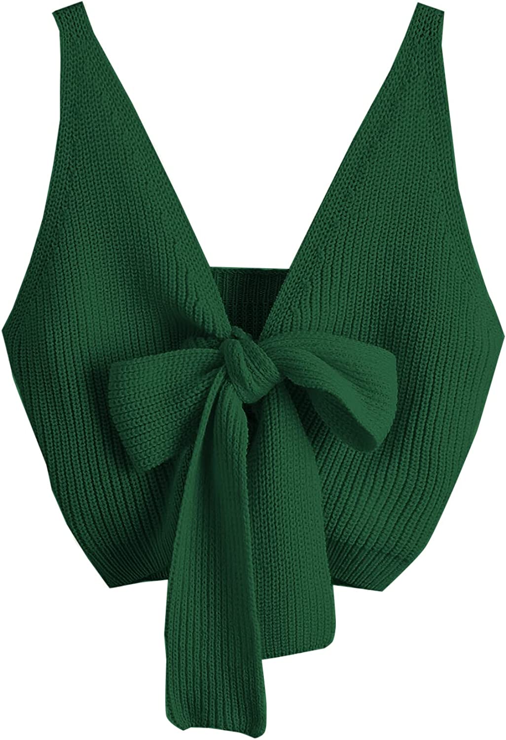 SweatyRocks Women's V Neck Tie Front Sleeveless Knit Crop Cami Tank Top