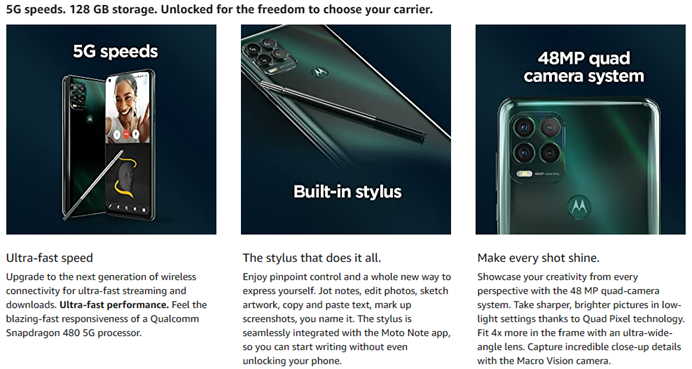 • Wi-Fi Hotspot Ready: Moto Stylus 5G offers Wi-fi hotspot connectivity in 2.4 GHz plus 5 GHz for the best experience.